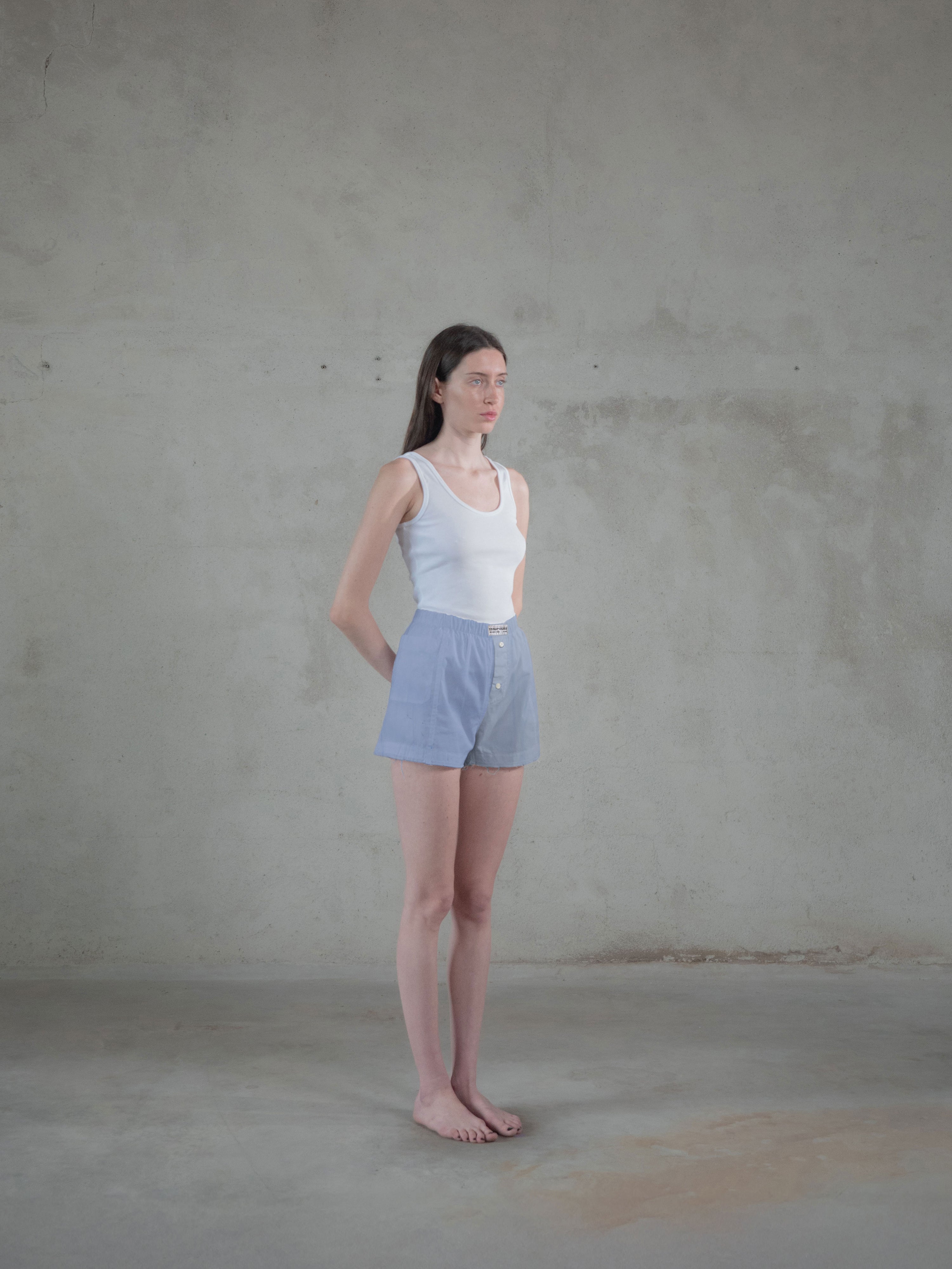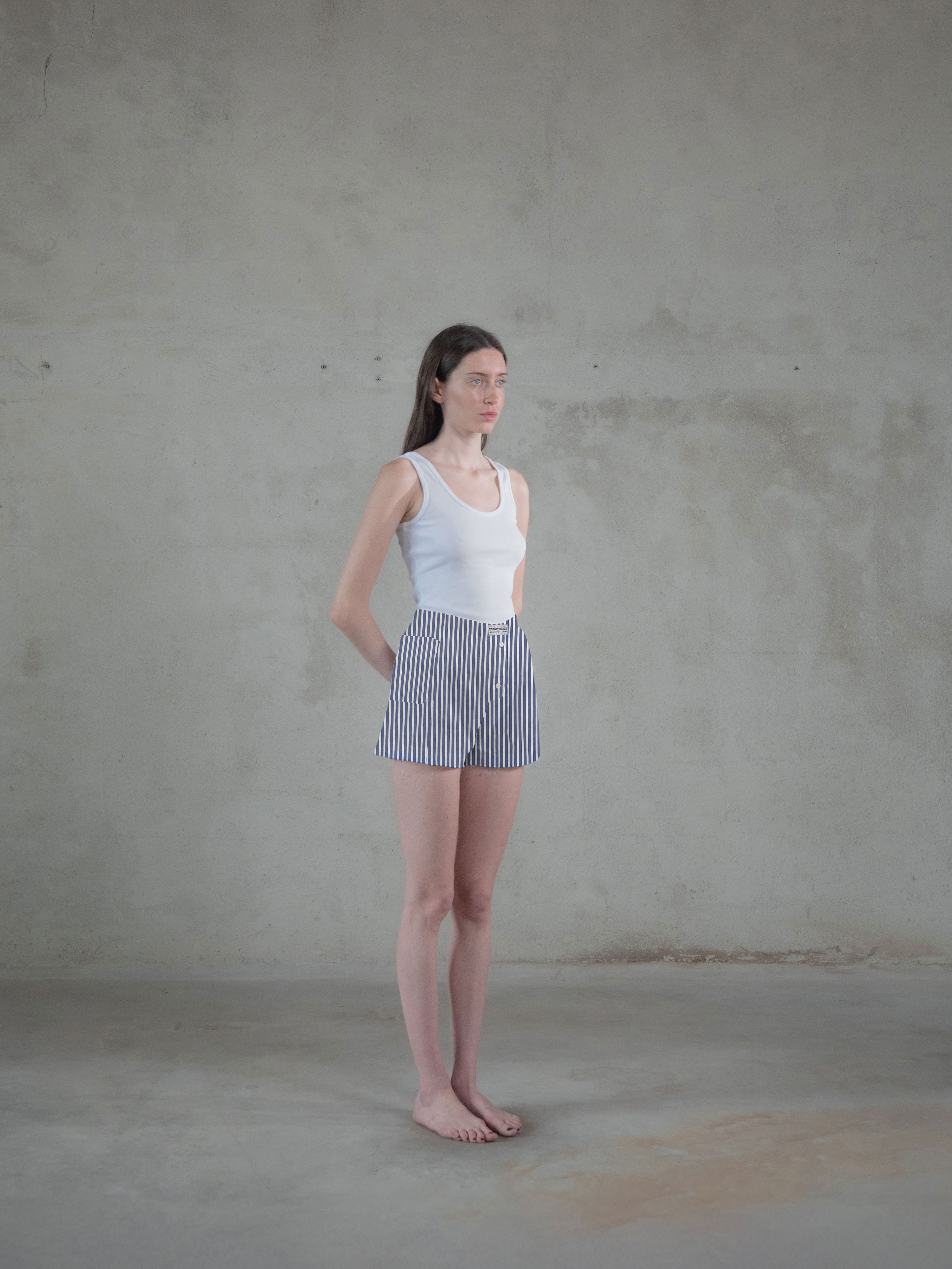 Regenerated Frayed Boxer - Sue White Blue Stripes