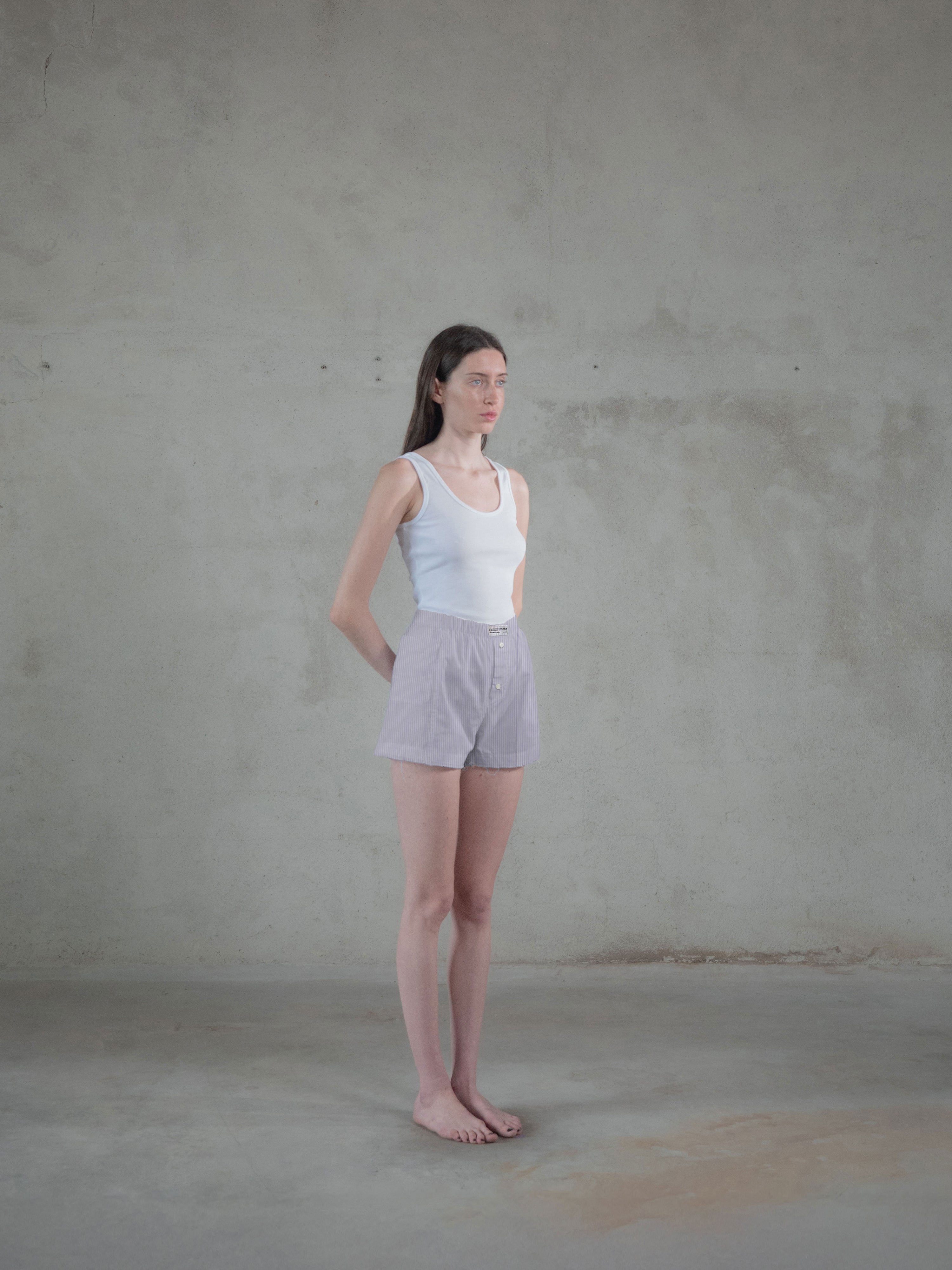 Regenerated Frayed Boxer - Sue w/ Pocket Violet Stripes