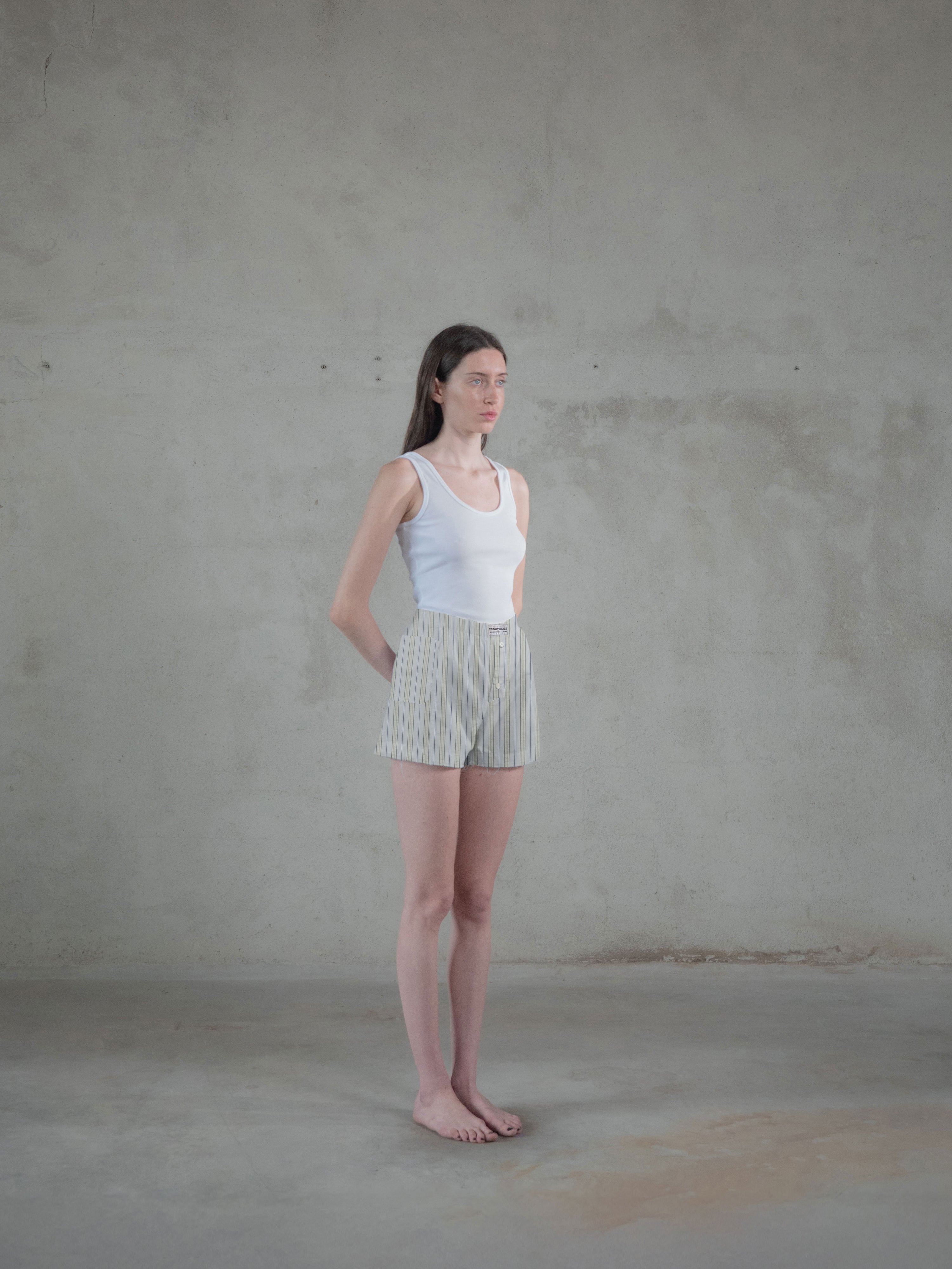 Regenerated Frayed Boxer - Sue White Beige Blue Stripes