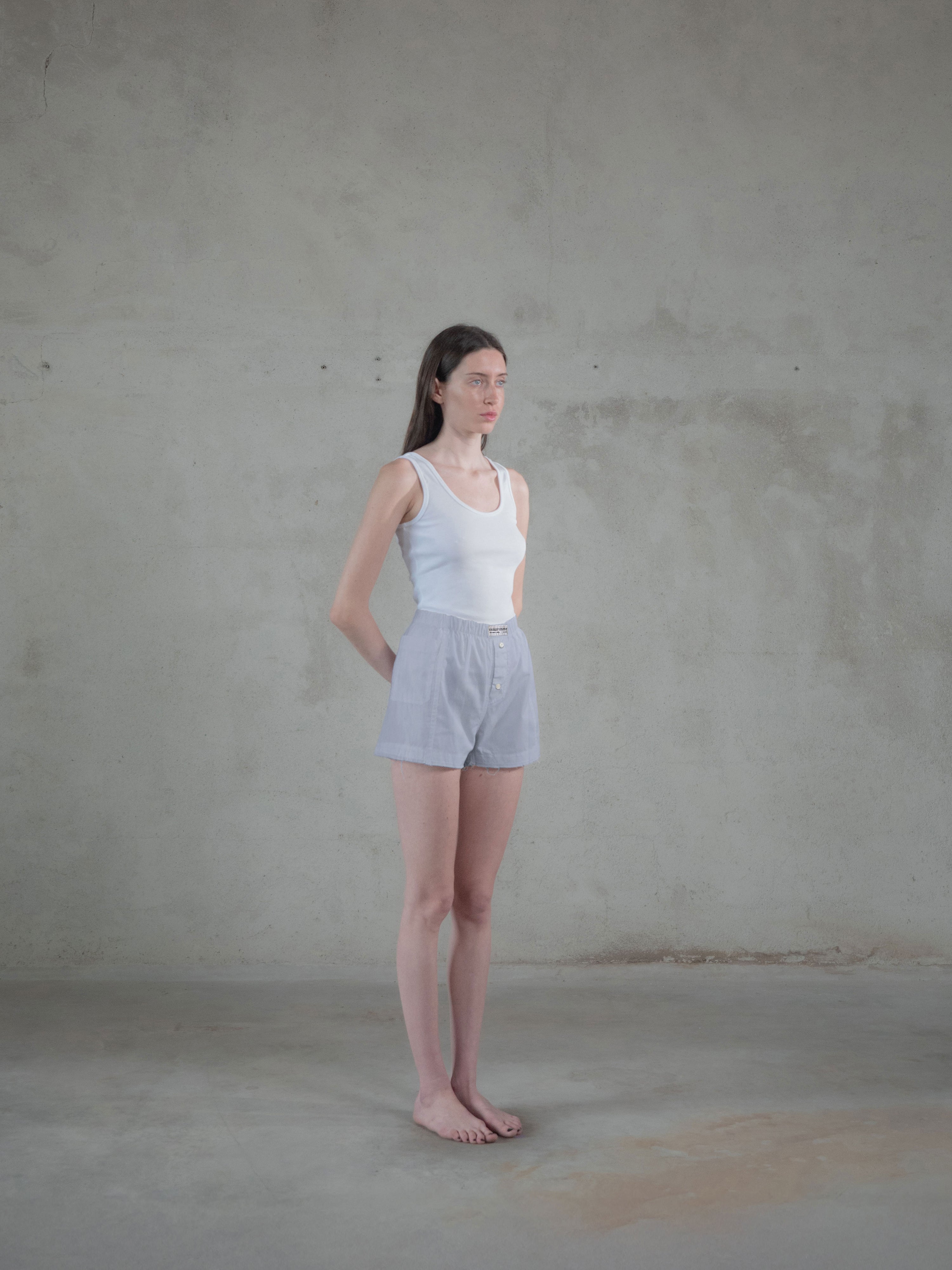 Regenerated Frayed Boxer - Sue White Blue Stripes